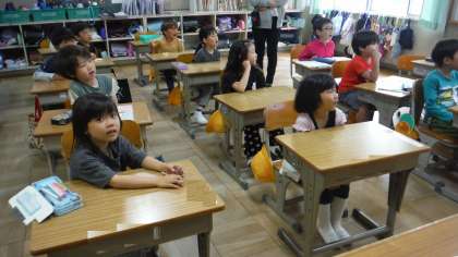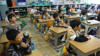体育大会に向けて、歌の練習をしている様子です。赤白に分かれて「ゴーゴーゴー(運動会の歌)」を歌います。子どもたちの元気な歌声を楽しみにしておいてください。