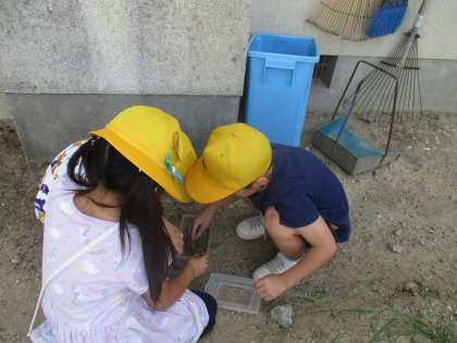 今日の生活は外に出て、お世話する生き物をとりにいきました!見つかったかな〜?