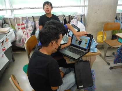 理科の学習の様子です。「ヒトの誕生」について、調べたことをタブレットにまとめていました。
