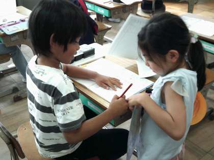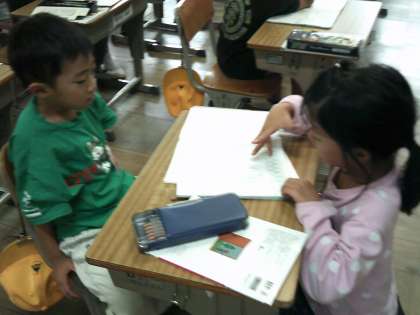分けて足すさくらんぼ計算の仕方を伝え合っています。