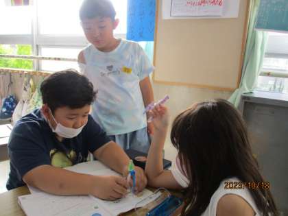 コンパスを使って長さをくらべる活動をしました。どうやったら比べられるかグループで確認しました。