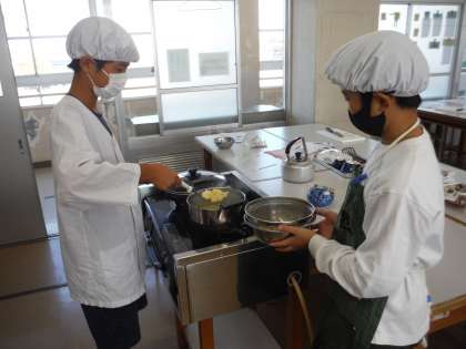 6年生調理実習がありました。じゃがいも、玉ねぎ、ポークスライスを使って、「ジャーマンポテト」を作りました。