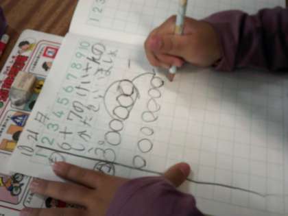 今日も繰り上がりの足し算の計算の仕方をみんなで考えました。