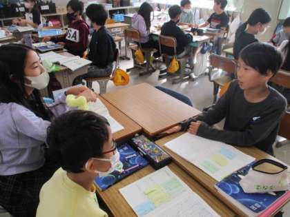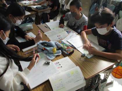国語で、グループに分かれて、よりよい学校生活について話あっています。