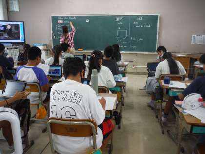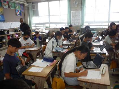 外国語の学習の様子です。自分で紹介する国を選び、資料を探して、発表する準備していました。