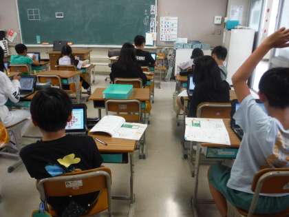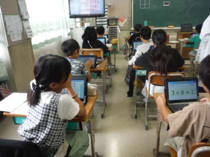 算数の学習の様子です。並んでいるおはじきを工夫して計算する方法について考えていました。