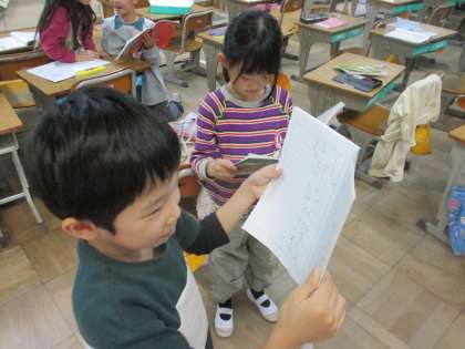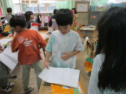 「しらせたいな、見せたいな」の授業で、育てた生き物の紹介を書きました!今日は読み合いっこをしました♬