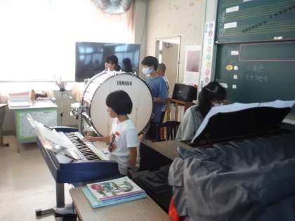 音楽の学習の様子です。『三原色』の曲を演奏していました。