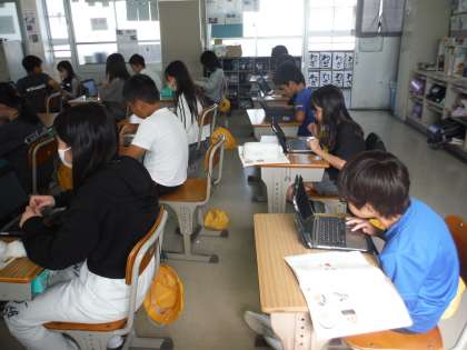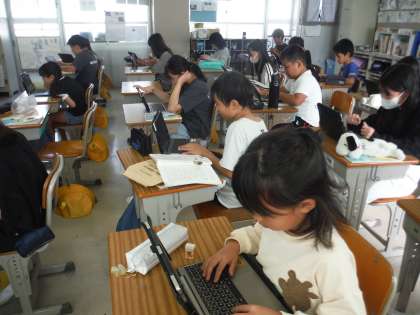国語の学習の様子です。話し合いについての振り返りをTeamsを使って共有していました。