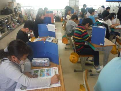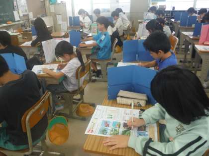 理科の学習の様子です。『秋の生き物』のテストをしていました。長い長い夏でしたが、すっかり秋らしい気候になってきました。