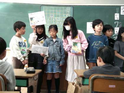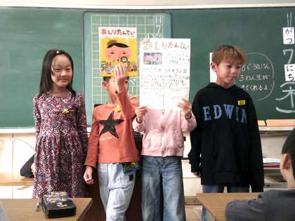 11月7日(木) 1年2組 公開日 2024/11/07 更新日 2024/11/07 1年生 3年生が朝の時間を利用し、お勧めの本を紹介しに来てくれました。 1年生が読みやすい本を選んでくれていましたね。 紹介ありがとうございました!