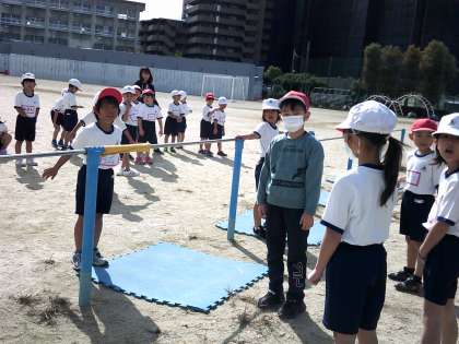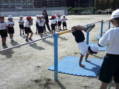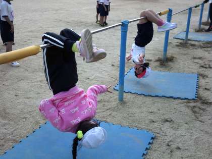 今日は新しい技の「こうもり」と「おさるの宙返り」に挑戦しました。