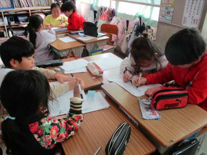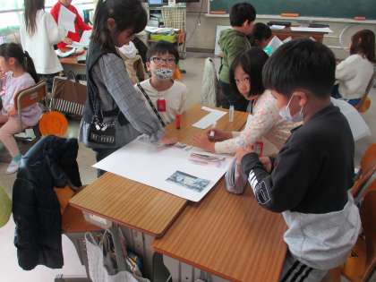 町たんけんのまとめづくりは、班で仕事を分担しながら協力して取り組む様子が見られました。完成が楽しみですね!!