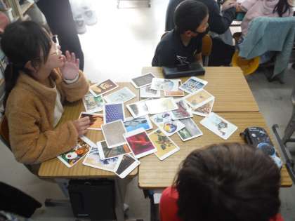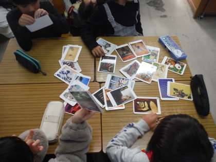 図工の学習の様子です。『アートカードを使って鑑賞を楽しもう!』をめあてに学習に取り組んでいました。