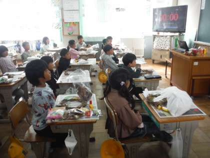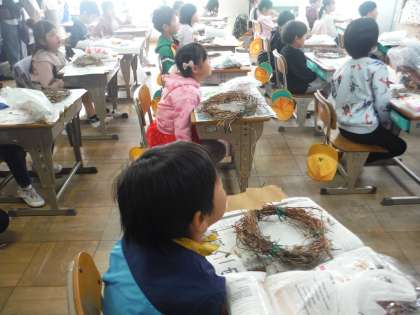 図工の学習の様子です。用意した材料を使ってクリスマスリースづくりをしていました。