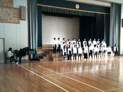 5年生にとっては、連合音楽会壮行会、連合音楽会(ビッグアイ)に続いて3回目の発表しでした。