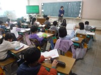書写の学習の様子です。書き方のプリントに集中して取り組んでいました。