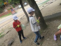 午後からは秋見つけをしました。班に分かれて秋を感じるものを探しています。学校では...