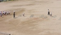 体育の授業でハードルに挑戦していました。じょうずに跳んでいます。