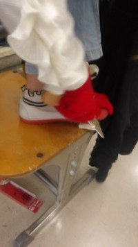 図工の時間でした。軍手をつけてのこぎりを使っています。慣れない工具,ケガなく終わ...