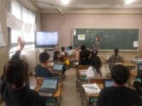 社会の授業です。日本に輸入されているものを発表していました。児童どうしの相互指名...