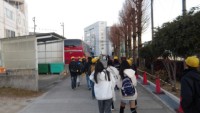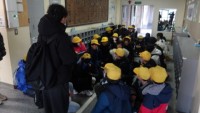今日は6年生の卒業遠足の日です。あまりに寒かったので登校した子どもたちの待機場所...