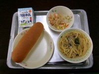今日の給食は,和風スパゲティ・豆腐サラダ・ミニコッペパン・牛乳でした。今日の和風...