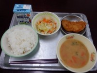 今日の給食は、とりしおうどん・豚肉のごま風味・ごはん・牛乳です。