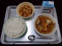 セルフチキンライス、パンプキンポタージュ、ごはん、牛乳です。チキンライスのケチャップ味とポタージュのまろやかな味がとてもマッチしていました。