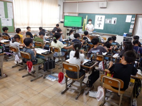 図書、書写、理科の授業です。書写の授業は毛筆で「はす」と書きました。先生の説明を聞いて、しっかり取り組みました。いい字が書けるといいですね。