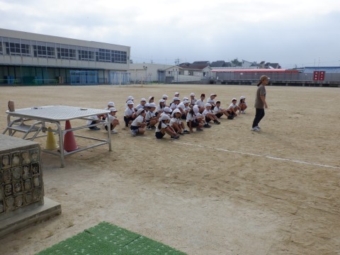 図書、体育です。体育は朝礼台前から鉄棒まで走り、鉄棒で決まった時間ぶら下がってから走って戻ってきました。みんな一生懸命です。しっかり体を使っています。