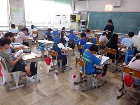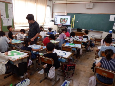 理科、図工、算数です。理科の授業は、ヒトの体を学習しています。人の骨格模型を実際に触ってみました。少し怖い気持ちもありますが、みんな興味を持って触っていました。
