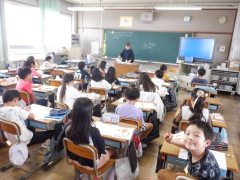 音楽、算数の授業の様子です。音楽は、「富士山」を歌っています。みんな気持ちよさそうに歌っています。先生からは富士山のイメージできれいな歌声を意識してと注意がありました。富士山は、やっぱりきれいですね。