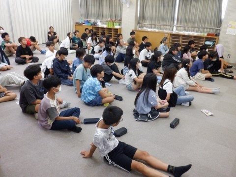 労災病院から看護師の方にお越しいただき、がんについてのお話を聞きました。日本人の死亡原因第1位ががんです。どんな病気なのか、治療法は、心のケアなどのお話を聞きました。少し難しいお話でしたが、みんなしっかりと聞いていました。今後にすごく役に立つお話だったと思います。