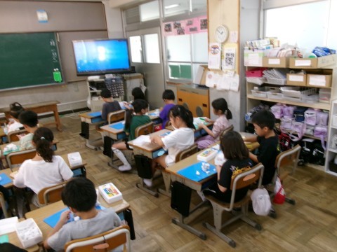 全クラスの図工の様子です。国語で学習している「お手紙」を題材に,粘土で作品をつくっているクラスがありました。思いえがいた形になるまで手を動かし,工夫しながら作っている姿が見られました。