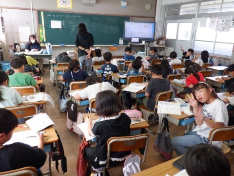 国語、書写の時間です。書写は、ゆっくりていねいに書く練習をしています。文字はそうして書くと必ず上手になります。しっかり身につけましょう。