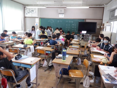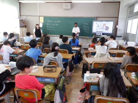 外国語、算数の授業の様子です。算数は、学年で同じ先生が担当しています。今回の授業も先生が入れ代わって授業をしています。これも楽しみになりますね。