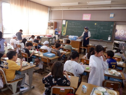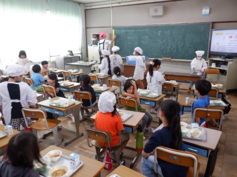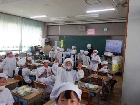 2年生もみんなで協力して準備を進めています。早いクラスではすでにいただきますをしました。ご苦労様です。