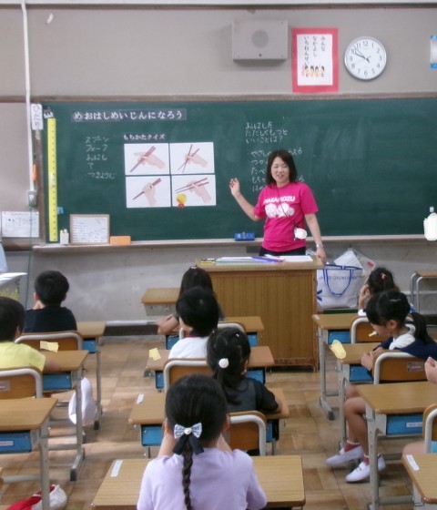 食育・生活・体育の授業の様子です。食育の授業は,講師の先生にきていただき,おはしの正しい持ち方やおはしを正しく持つとどんな良いことがあるのか等の学習をしていました。今日の給食は,いつもより意識しておはしを使う姿が見られました。