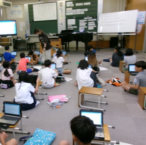 国語と音楽の様子です。音楽では,「とんびの様子にあう歌い方を工夫しよう」をめあてに,一人ひとりが,とんびがどんな様子かを考えていました。ただ,歌うのではなく,その情景を思いうかべながら歌えるように授業をすすめています。
