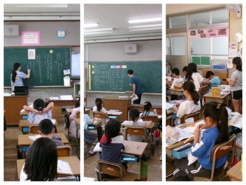 道徳,算数,図工の様子です。算数の授業では、比較的覚えやすい「5の段」に挑戦しました。子どもたちは、5ずつ増えていく数の規則性を手掛かりに、熱心に取り組んでいました。