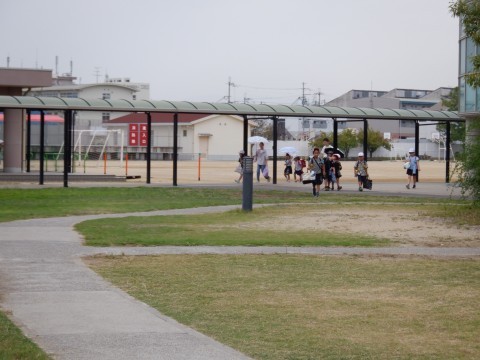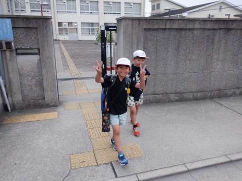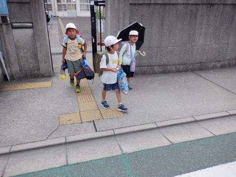 雨が少し、傘をさすかささないかぐらいです。児童たちは1週間の活動を終えて下校していきます。気温が下がって活動しやすくなりました。でも、こんな時、疲れが出やすいので週末はゆっくり休んでください。来週も元気に頑張りましょう。