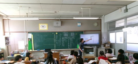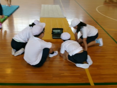 体育と国語の様子です。体育では,マット運動の開脚前転をしていました。タブレットで録画し,グループで見返しながら自分たちの動きを振り返っていました。国語では,ちいちゃんのかげおくりの読み取りをしていました。下校の時に,正門前でかげおくりをしている児童を見かけます。