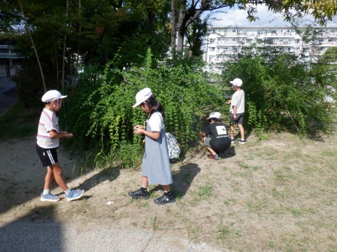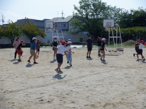 玄関前の期のドングリひろいをしている児童がいました。大きなドングリや形のいいもの、色のきれいなものを見つけては喜んでいました。グラウンドでもいつものように鬼ごっこ、バスケットボールなどで楽しんでいました。