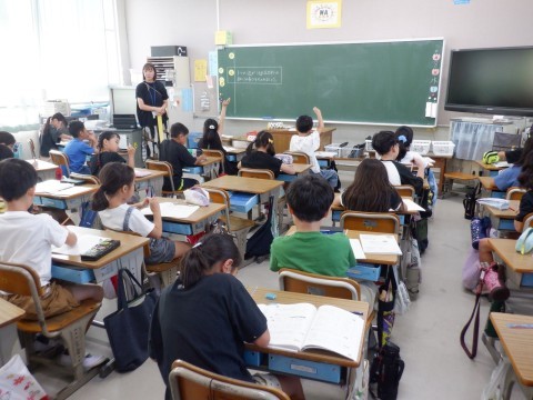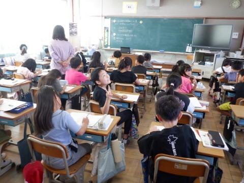 算数の授業です。文章問題を考えています。計算の式を組み立てる前に問題の意味をとるのが、まず、難しいです。あわてることはありません。ゆっくり考えてしっかり意味をとっていきましょう。