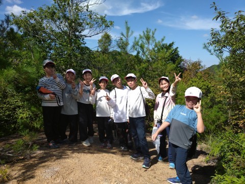オリエンテーリングが、始まっています。問題7の場所は、今回の活動範囲の1番高い場所にあります。手を引っ張ったり、声をかけ合ったり、協力して進めています。
