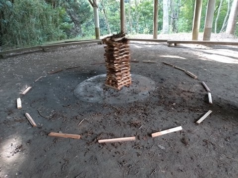 体育館でレクリエーションをしてる間に、キャンプファイヤーの準備が終わりました。この後、夕食・キャンプファイヤーの予定です。