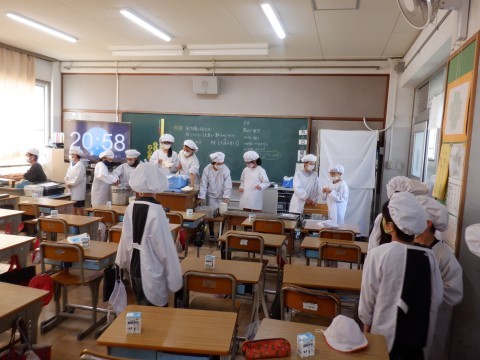 準備は順調に進んですでにいただきますをしたクラスもありました。みんなで楽しく食べる給食はいいですね。