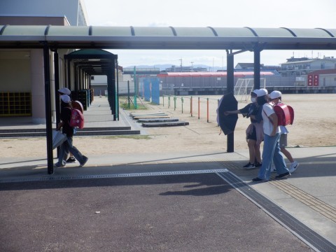 今日も1日の活動が終わって児童たちが下校していきます。この時間は少し暑くなっています。今日は5年生が林間学校に行っています。天気も良くて素晴らしい林間学校になっていることと思います。明日、元気に帰ってきてください。