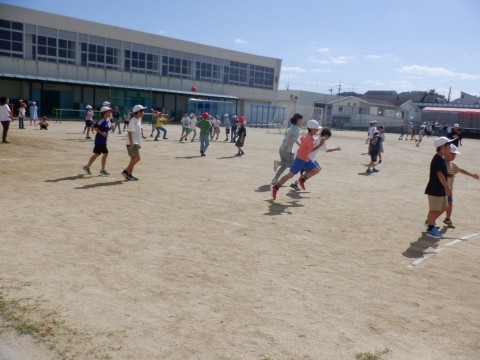 さわやかな秋の空気の中、グラウンドに出て遊ぶ児童が多くなっています。サッカー、ドッジボール、鬼ごっこなどで体をしっかり動かしています。いい汗ですね。